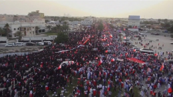 Десятки тысяч людей собрались на демонстрацию в Бахрейне, требуя демократических реформ. Это крупнейшая акция протеста в стране за последний год.