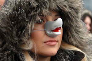12 января возле киевского торгового центра Ocean Plaza собралось массовое скопление людей, которые выкрикивали слоганы в защиту акул.